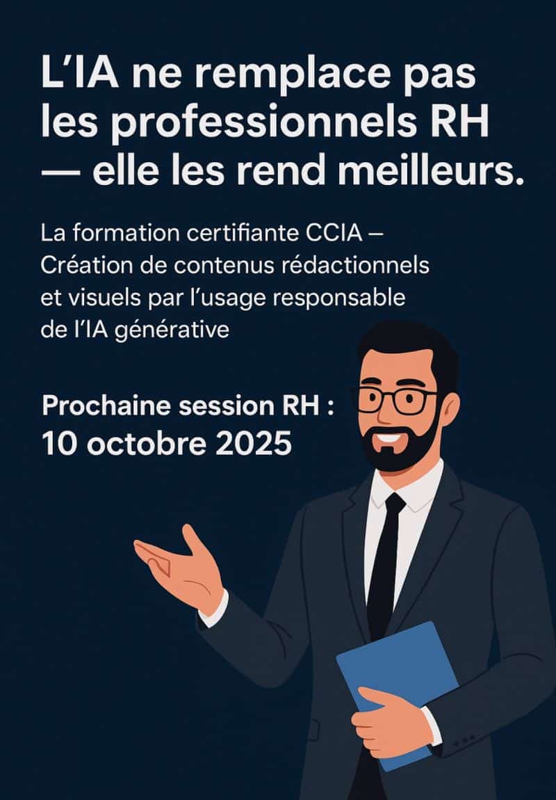 Pour accompagner ce virage, la formation certifiante CCIA – Création de contenus rédactionnels et visuels par l’usage responsable de l’IA générative propose de découvrir comment intégrer ces outils tout en respectant les principes éthiques et réglementaires (RGPD, IA Act…).