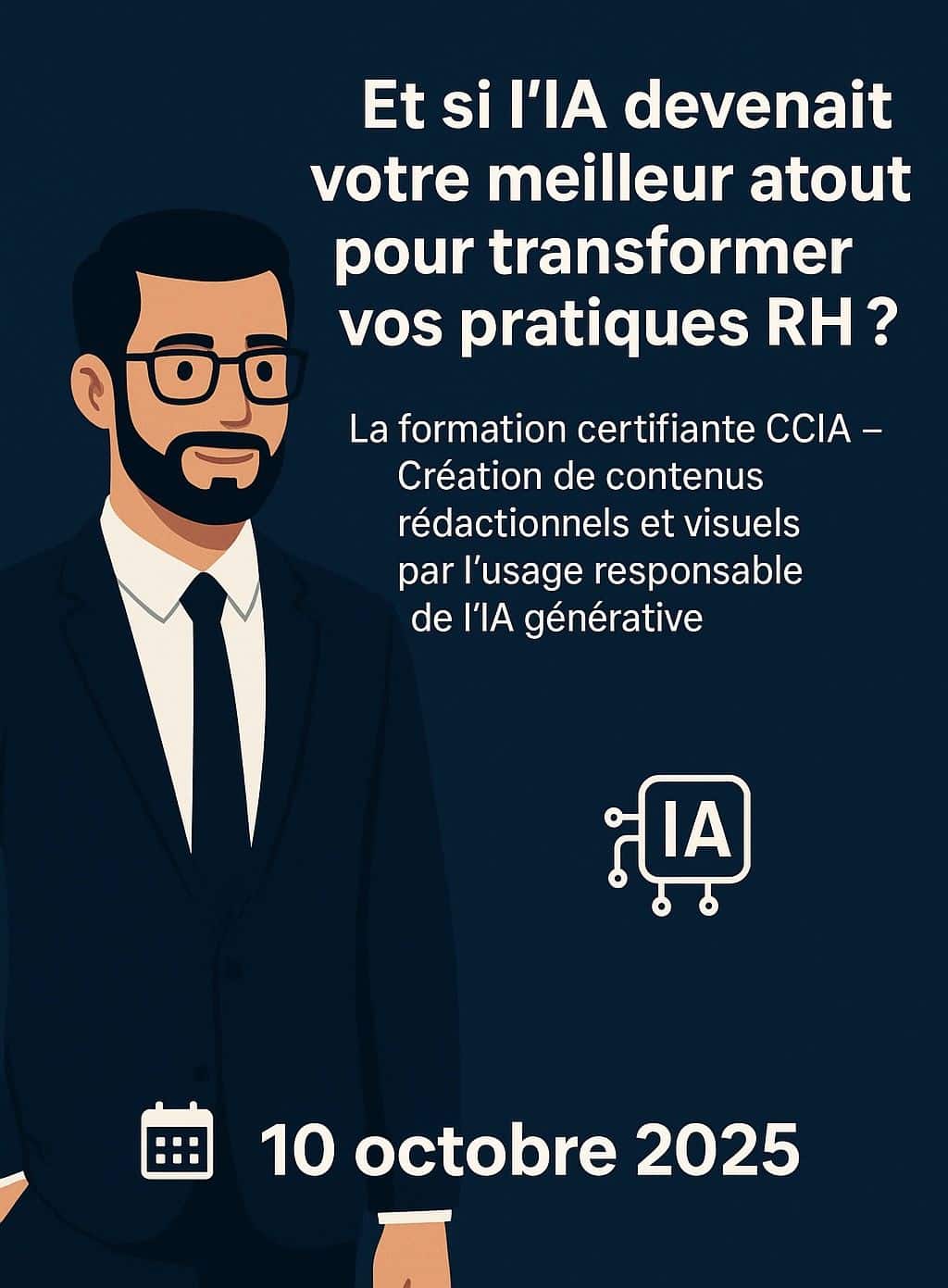 La session RH de la formation certifiante CCIA – Création de contenus rédactionnels et visuels par l’usage responsable de l’IA générative vous offre un cadre pratique et éthique pour intégrer l’IA dans vos pratiques RH.